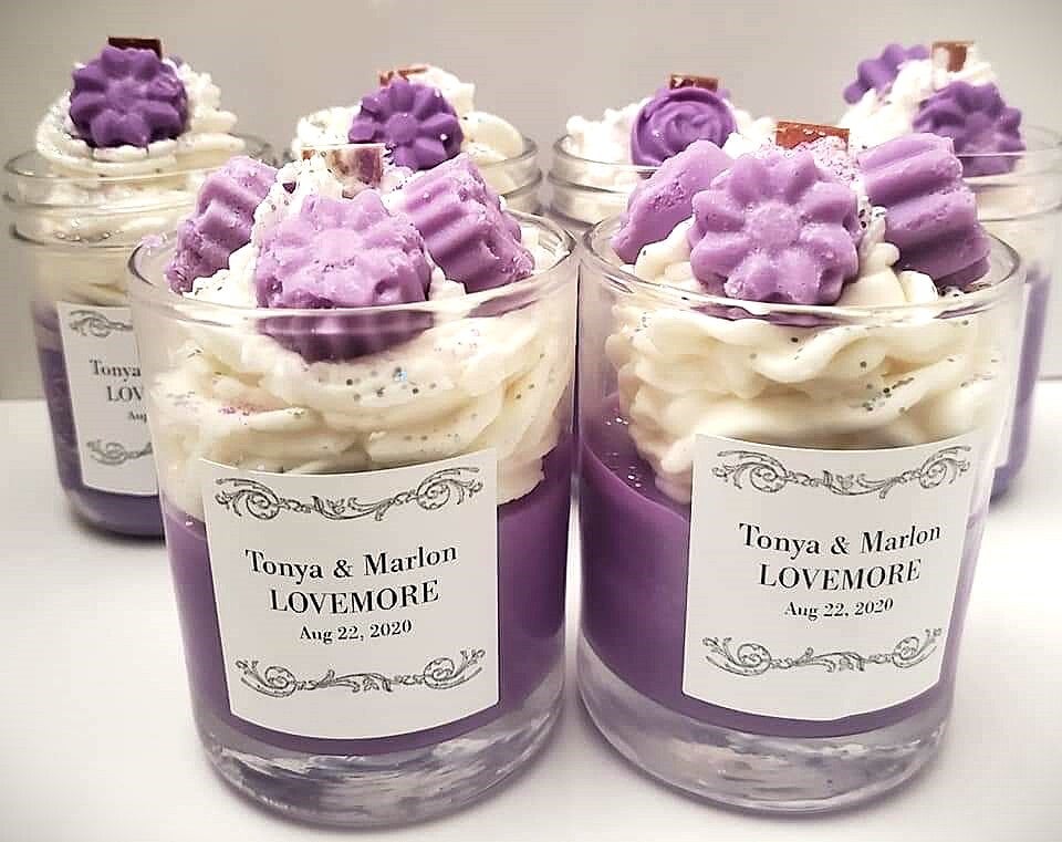 Create unforgettable wedding favors with custom-scented candles and personalized labels.